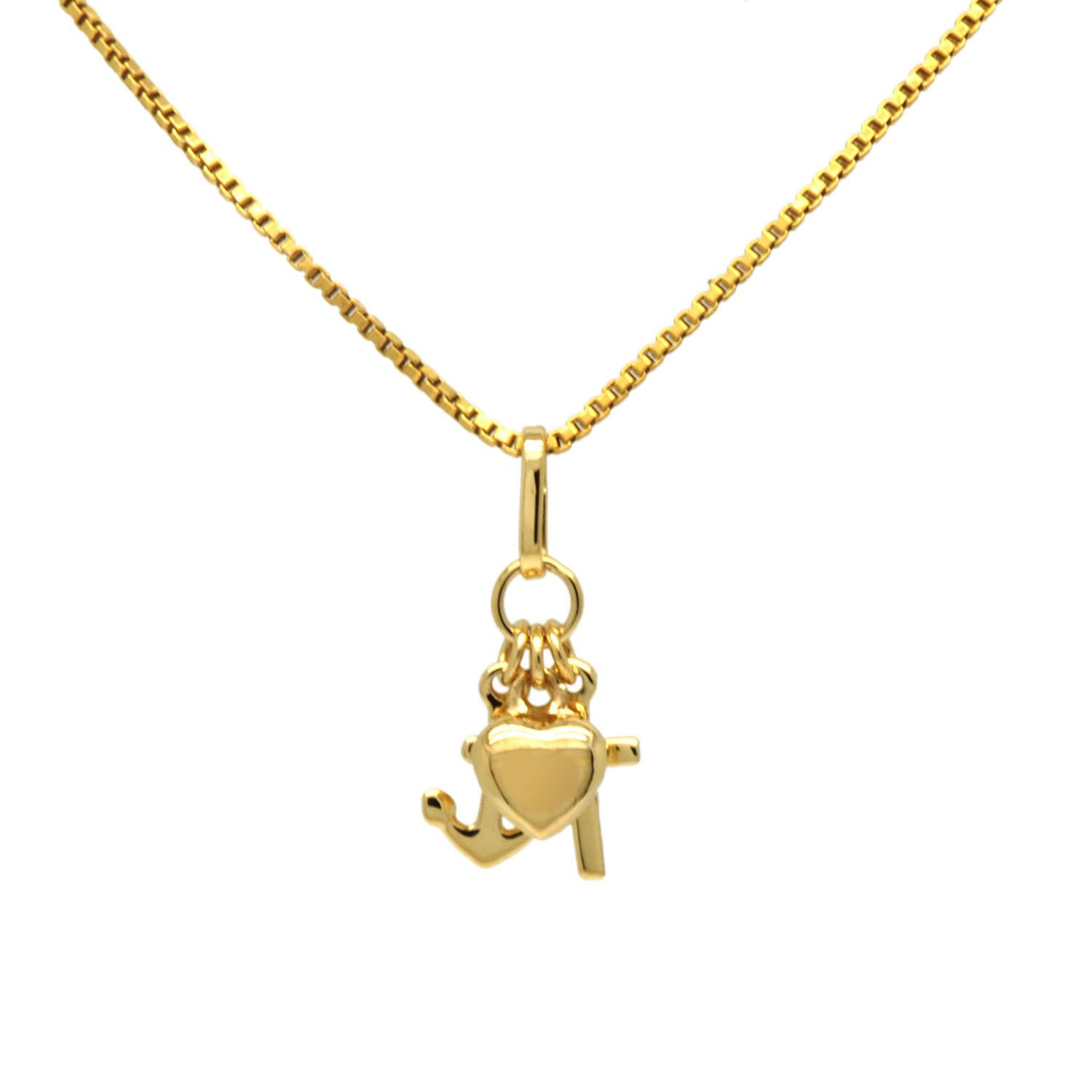 Anheng i gull 14 karat (585) med anker, hjerte og kors.