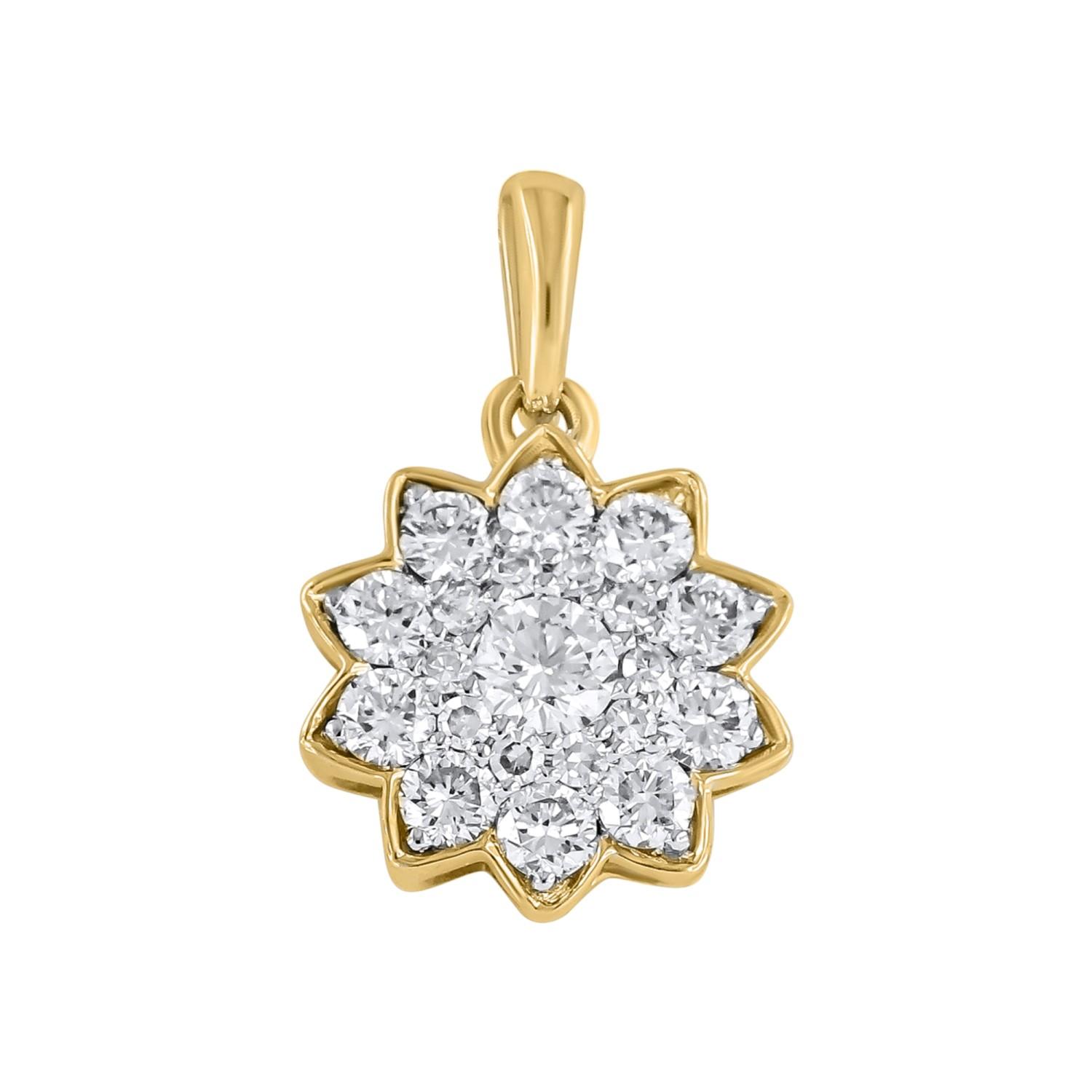 Anheng i gult gull 14K (585). Rosett med 0,38ct TWSI diamanter.