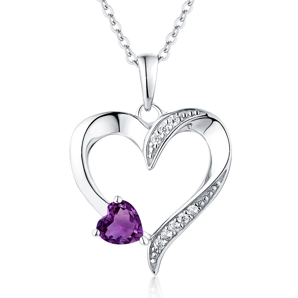 Anheng i sølv (925). Åpent hjerte med lilla hjertesirkon.