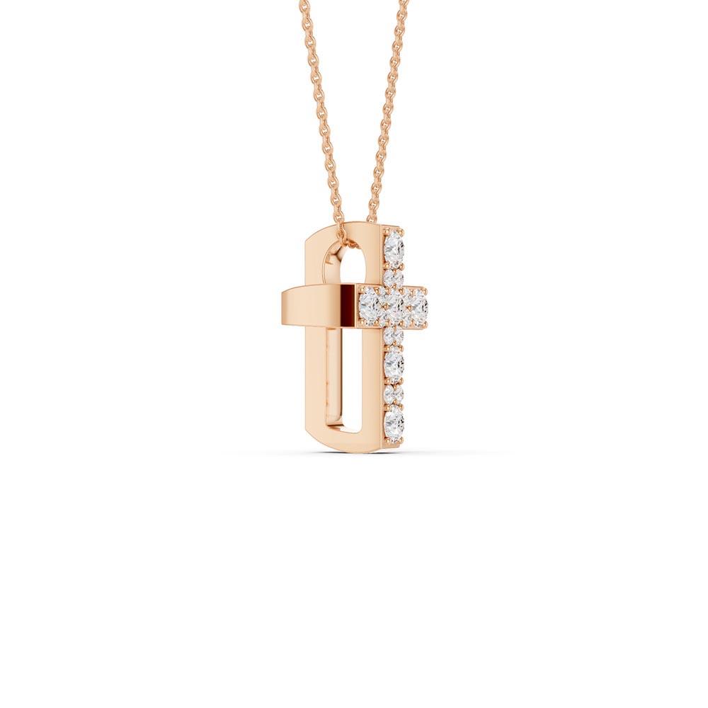 Kors i roségull 14Karat (585) med totalt 0,12ct TWSI diamanter.