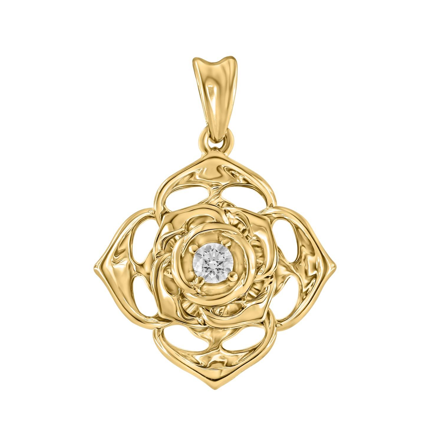 Hjem Halssmykker Gull Diamant Anheng Molderosen gult gull 0,15ct TWSI