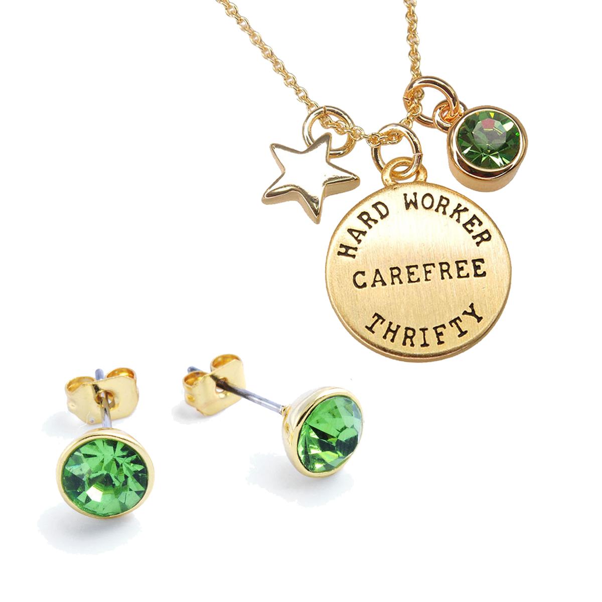 Birthstone sett fra JWLS i gullforgylt med grønne stener.