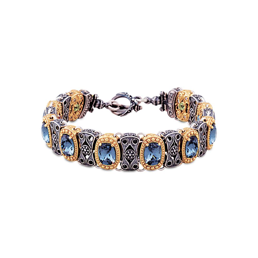 Snu armlenken og skift fra blå stener, til gullfarge med små fler fargede stener.
