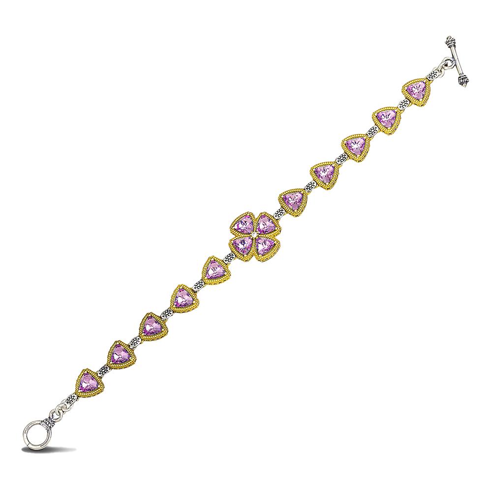 Hver krystall er innfattet i en forgylt sølvramme med detaljerte utsmykninger som gir armbåndet et elegant og luksuriøst uttrykk.