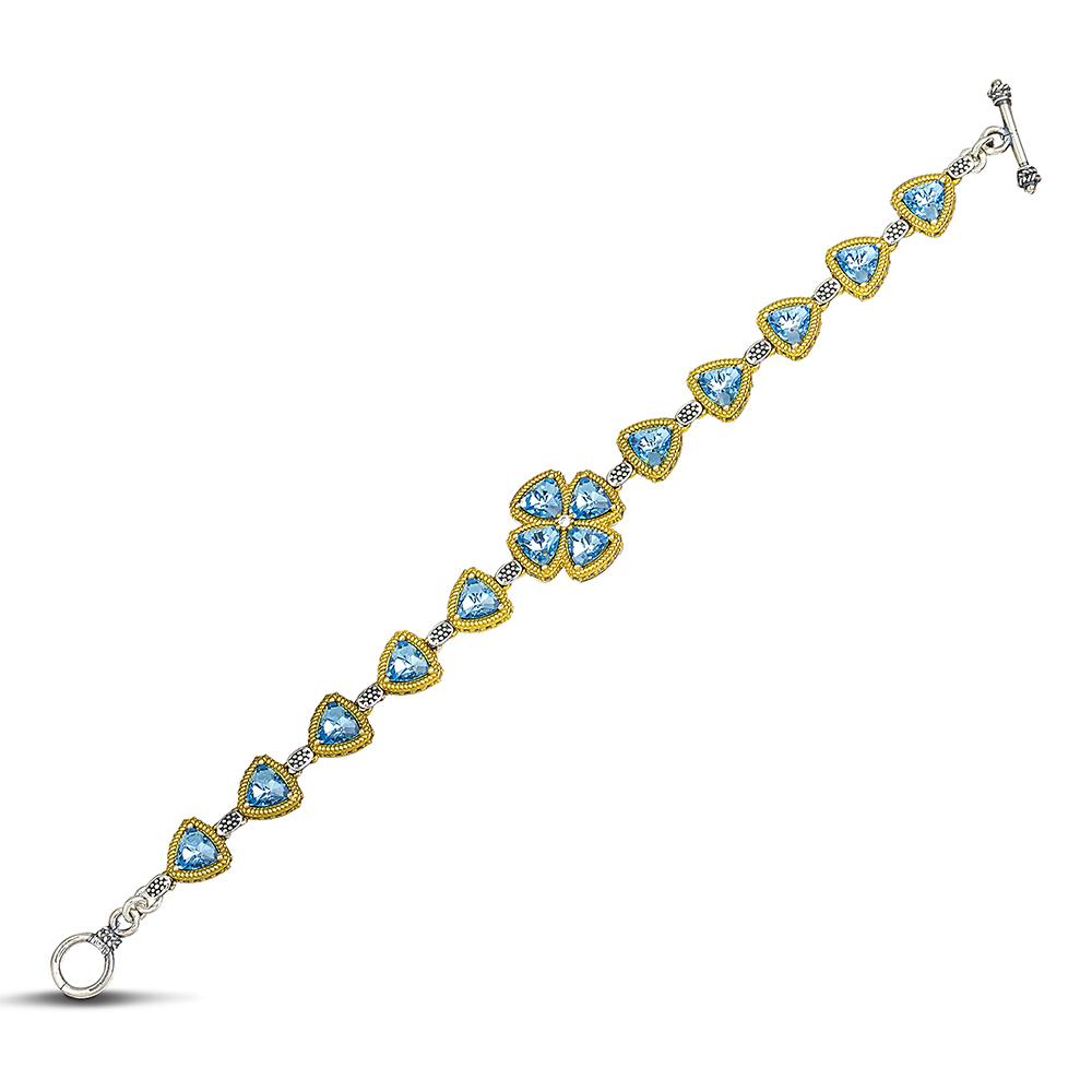 Et utsøkt armbånd fra Passatempo-kolleksjonen, laget i 925 sølv med lenker prydet av trekantformede, lyseblå Swarovski-krystaller.