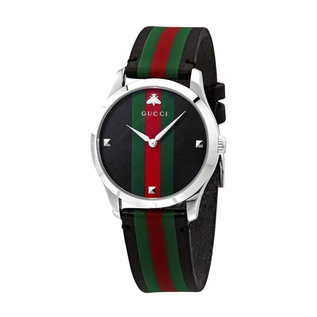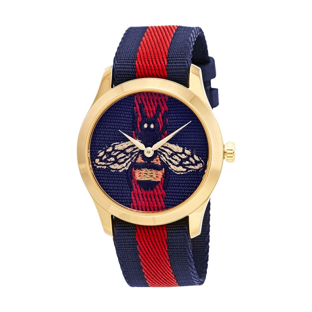 GUCCI G-Timeless med rød og grønn bie på skiven. Diameter: 38mm