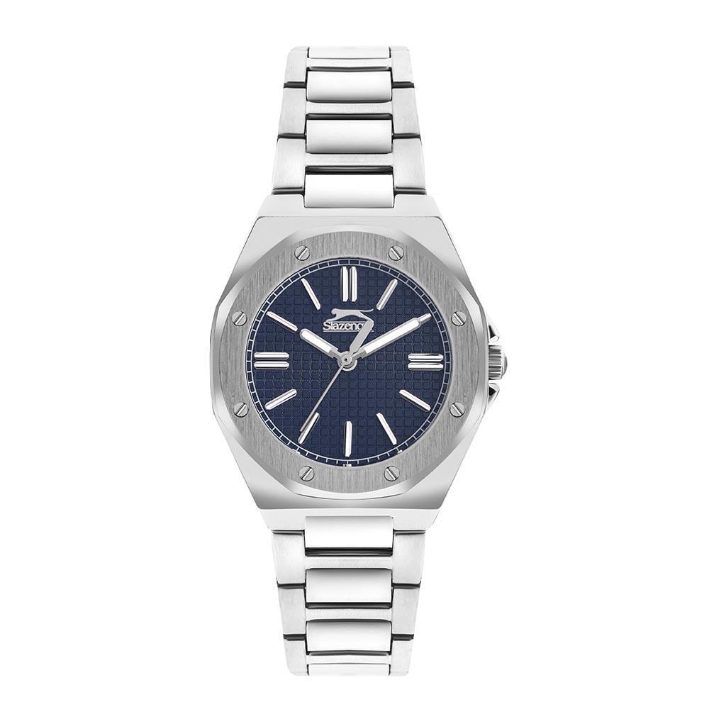 IUS dameklokke med stållenke, hvit urskive og tall.