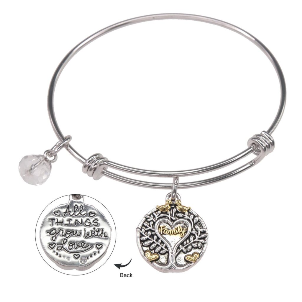 Armring fra JWLS. Sølvfarget flue- og hjertecharm.