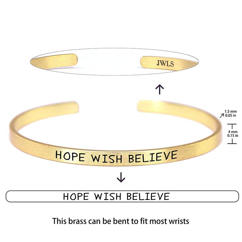 Armring fra JWLS med teksten “Hope Wish Believe”.