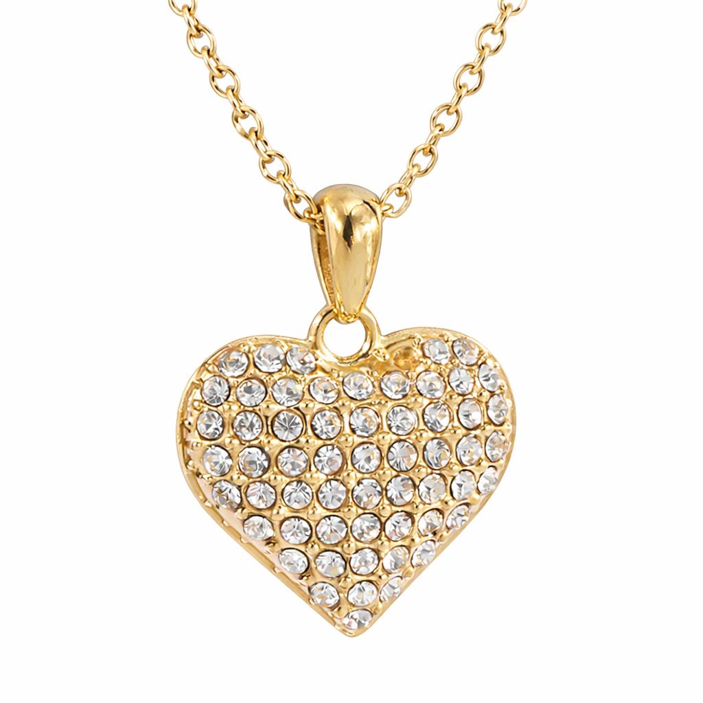 Hjerte med blanke stener i gullfarget stål fra JWLS.