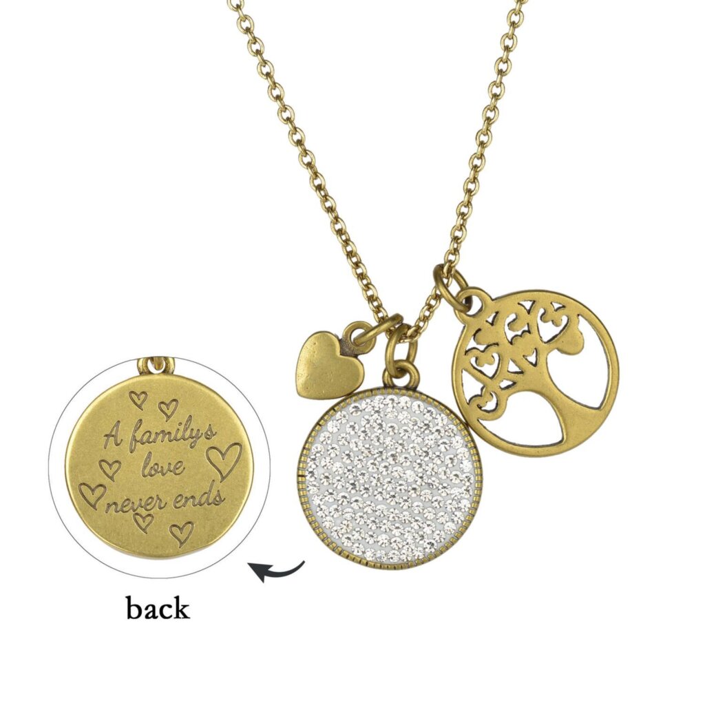 Gullfarget halssmykke fra JWLS med “Livets tre”.