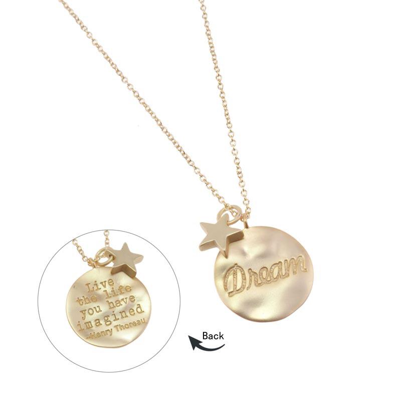Baksiden har teksten ‘Shoot for the moon, even if you miss you’ll land among the stars’