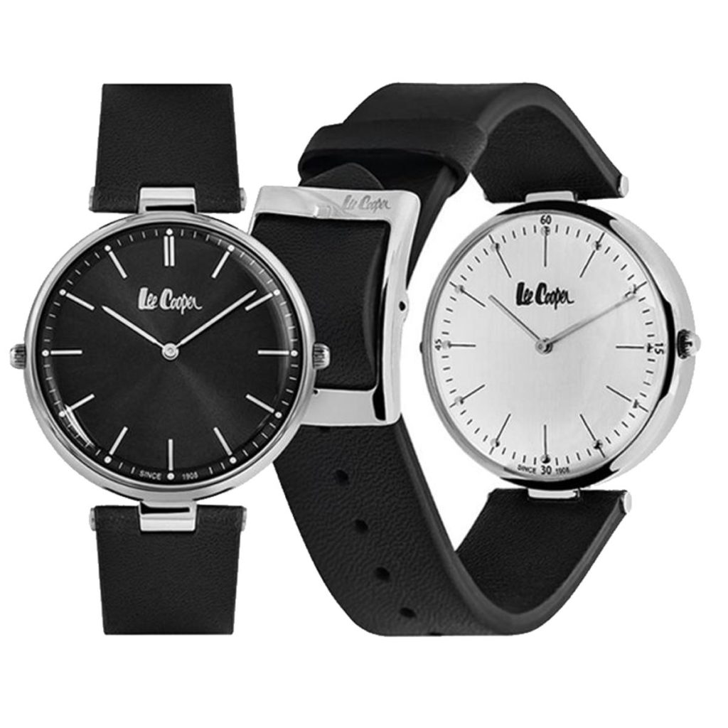 Klassisk svart herreklokke med sølvfarget urkasse fra Lee Cooper. Vanntett til 3 ATM.