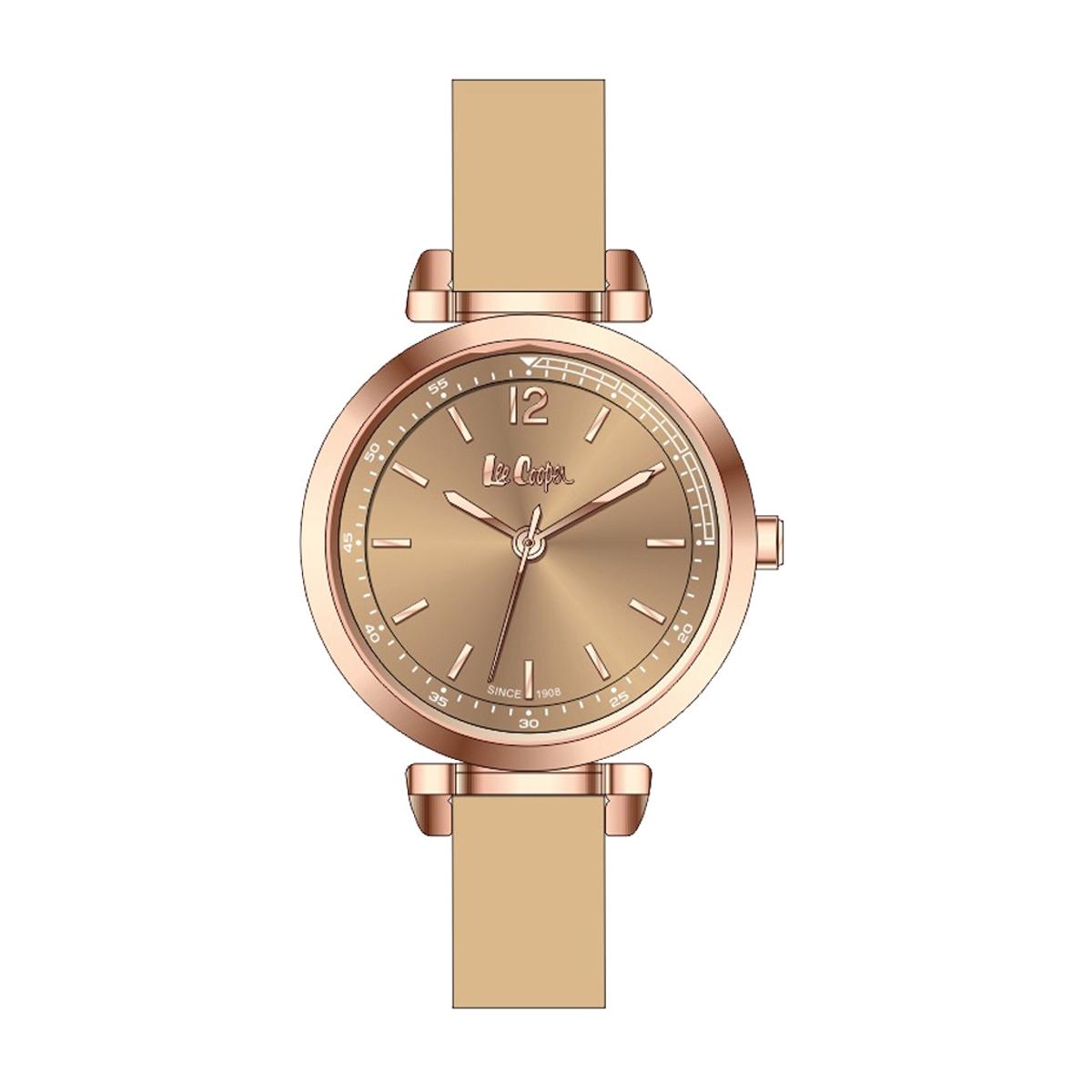 Lekker dameklokke fra Lee Cooper med beige skinnreim. Klokken har en roséfarget urkasse.