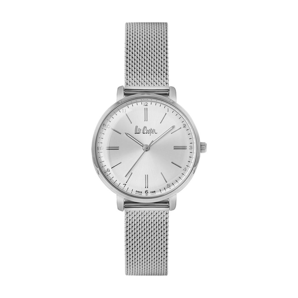 Dameklokke fra Lee Cooper med stållenke og sølvfarget urskive.