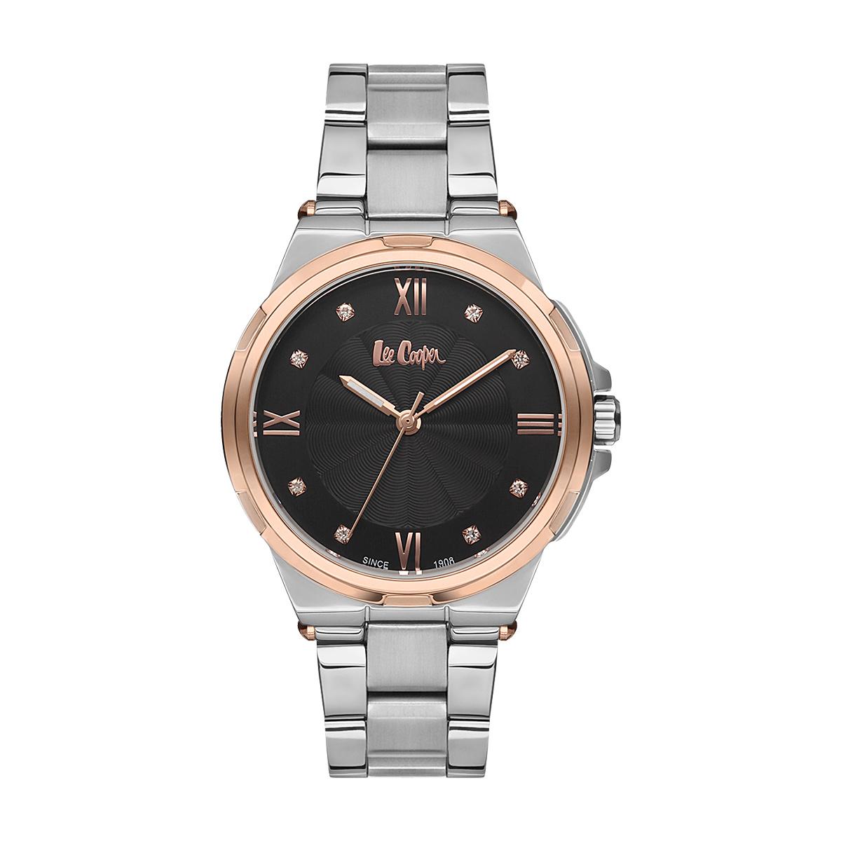 Dameklokke fra Lee Cooper med stållenke og svart urskive.