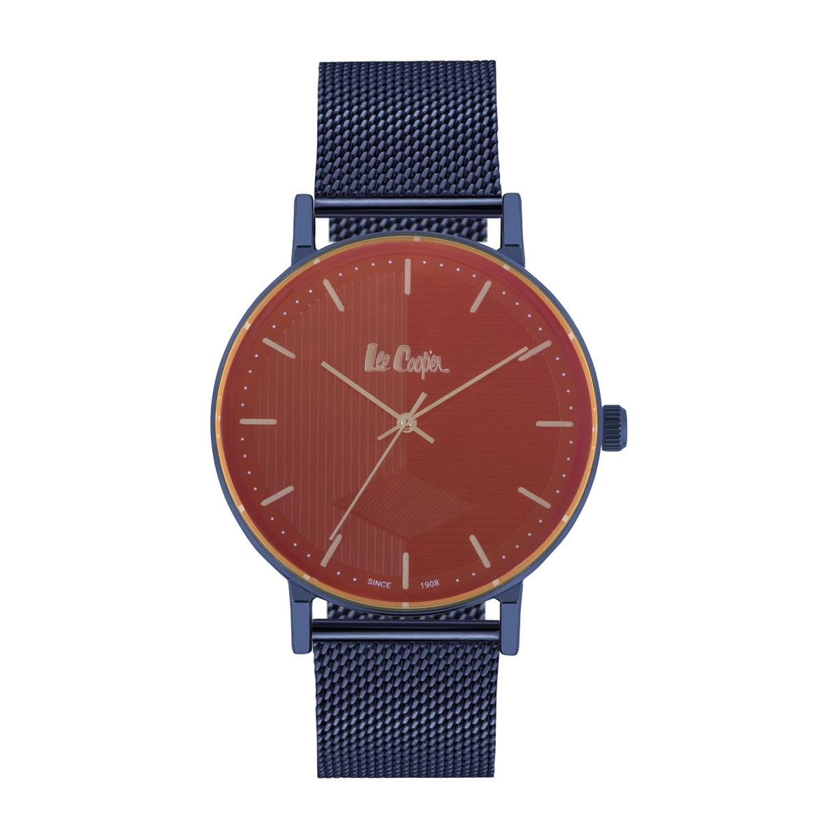 Klassisk herreklokke fra Lee Cooper med blå meshlenke og urkasse. klokken har “speilglass” (Fargen er forskjellig i ulike vinkler).