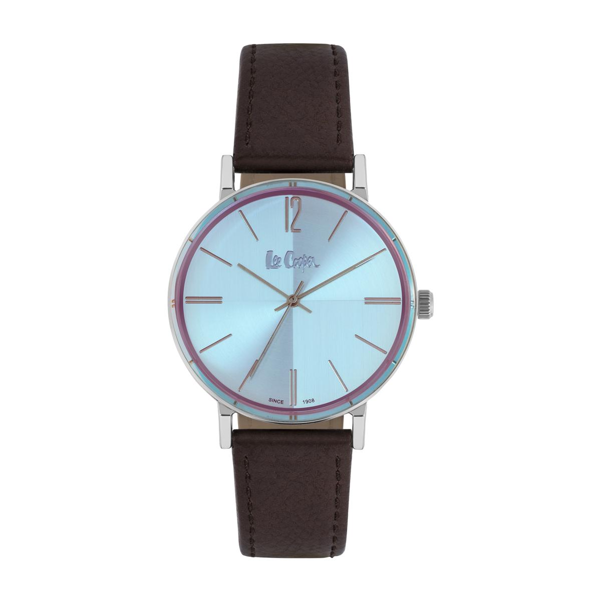 Klassisk hereklokke fra Lee Cooper med brun skinnreim og sølvfarget urkasse. Klokken har “speilglass” (Fargen er forskjellig fra ulike vinkler).