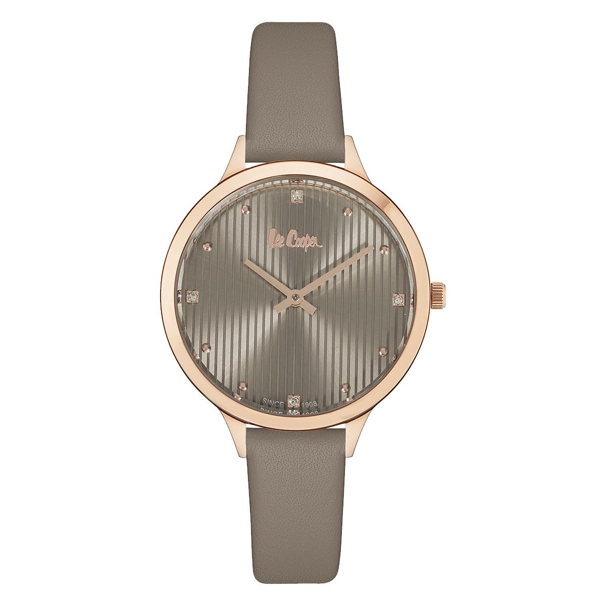 Fin klokke Fra Lee Cooper. Brun urskive og skinnreim med urkasse i rosé gir en enkel men fin kombinasjon.