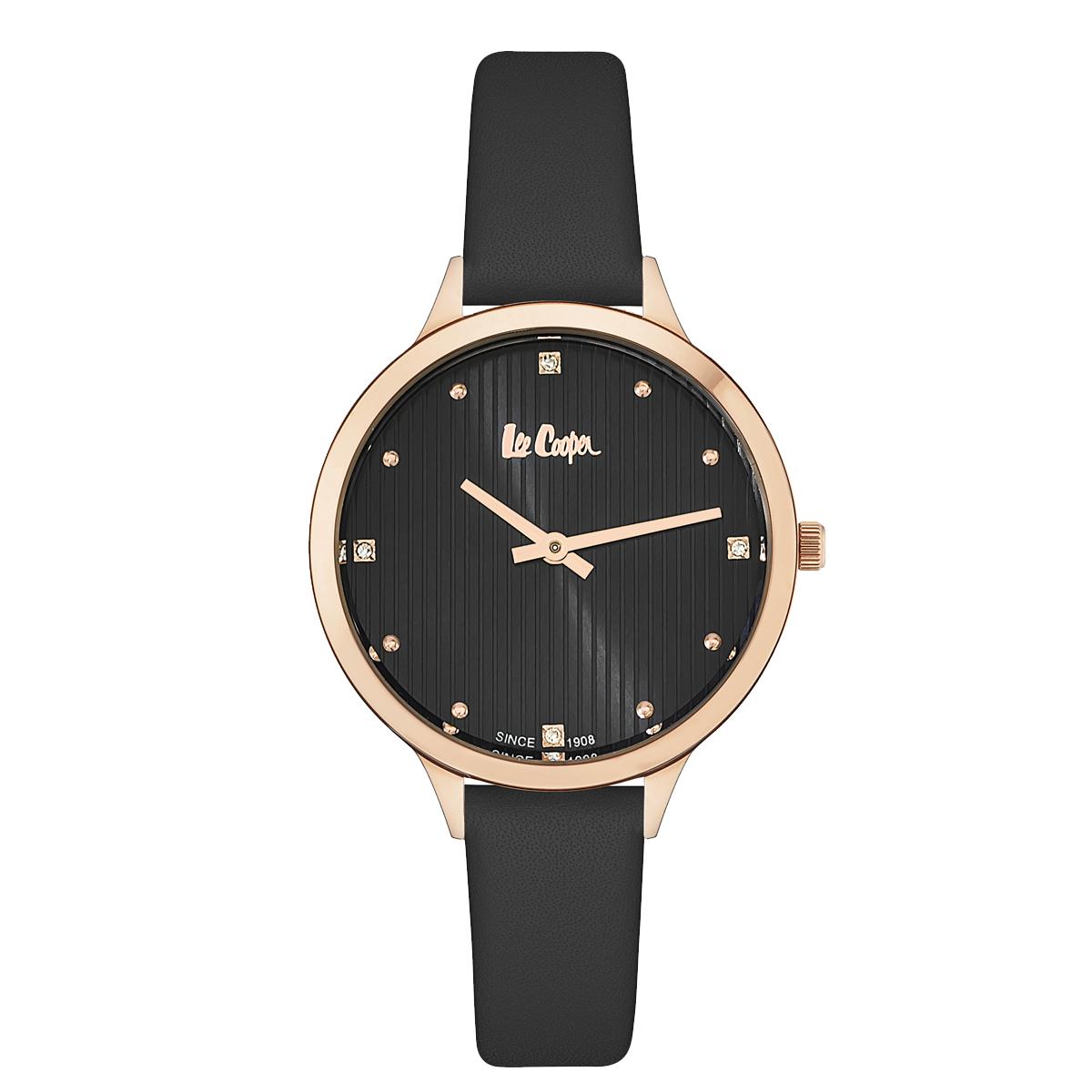 Tidsriktig klokke fra Lee Cooper. Svart urskive og skrinnreim kombinert med roséfarget kasse og visere er en perfekt kombinasjon som kan brukes til alle anledninger.