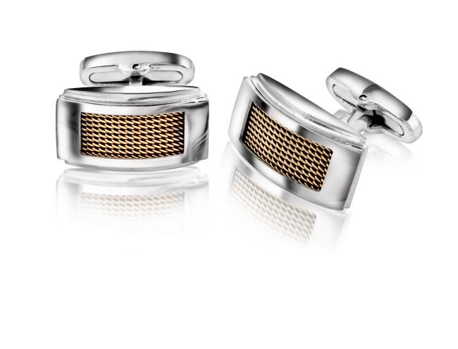 Zeger mansjettknapper i stål. Blank modell med innfelt mønster i rosè gull farge.
