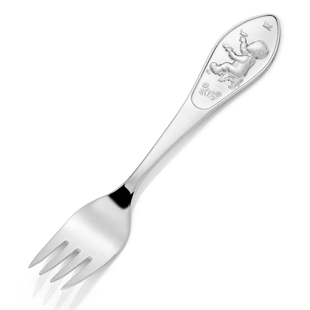 Barnegaffel i sølv (925). Metter liten fugl med gutt på skaftet.