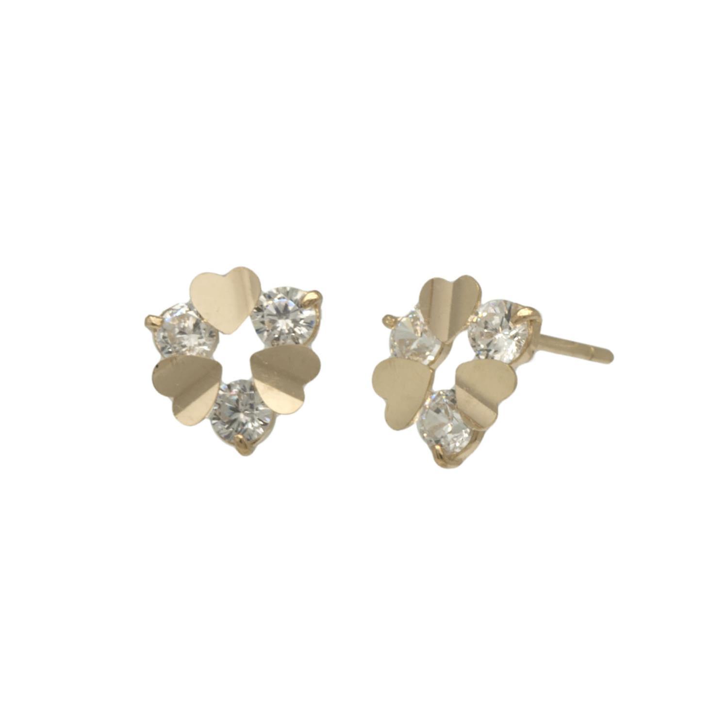 Ørepynt i 14 karat gull (585) med hjerter og zirkonstener.