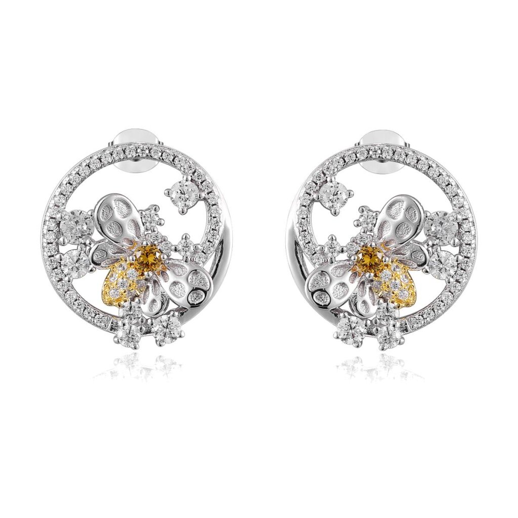 Ørepynt i sølv (925). Perle med sirkonstener rundt.