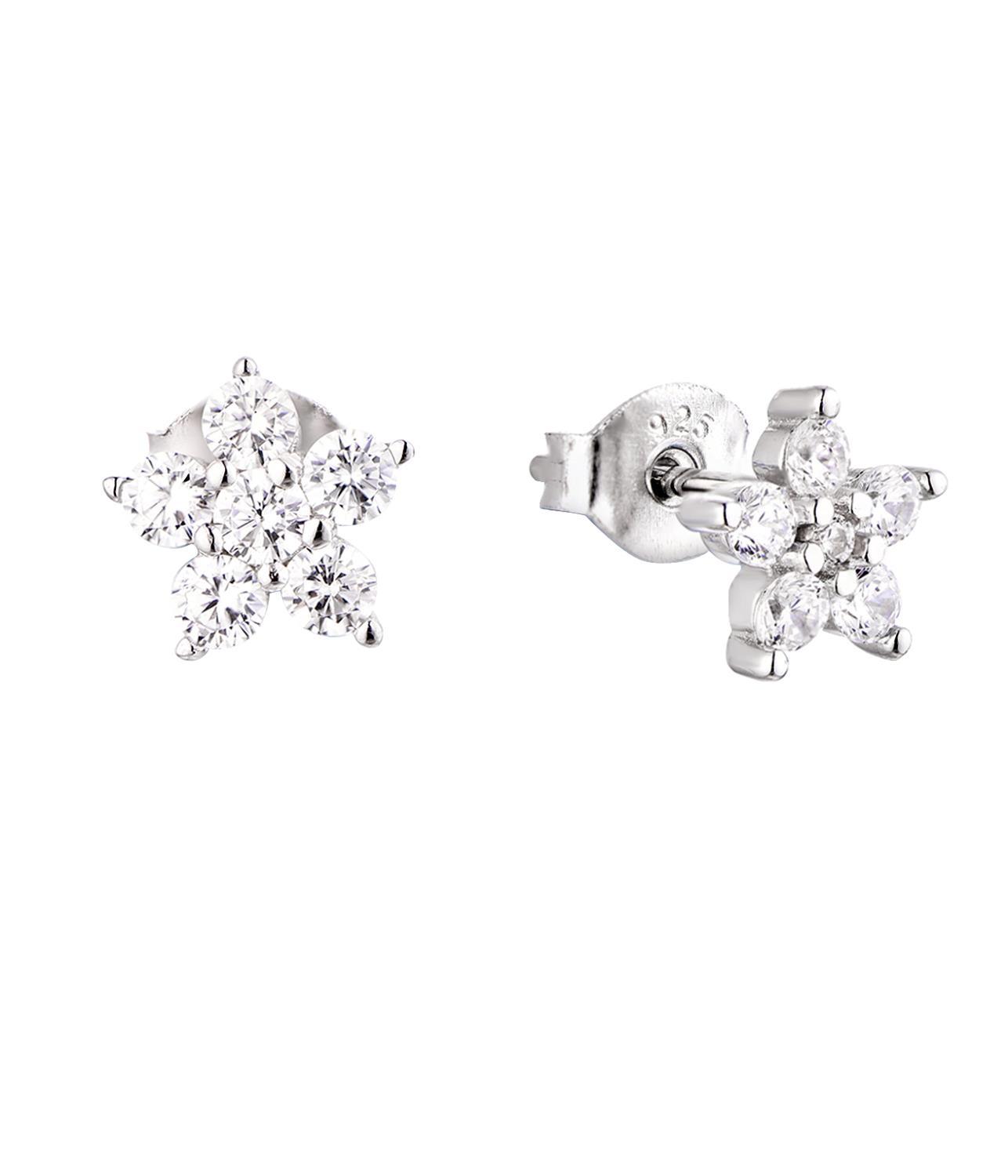Ørepynt i sølv (925). Rosett med blanke sirkonstener.