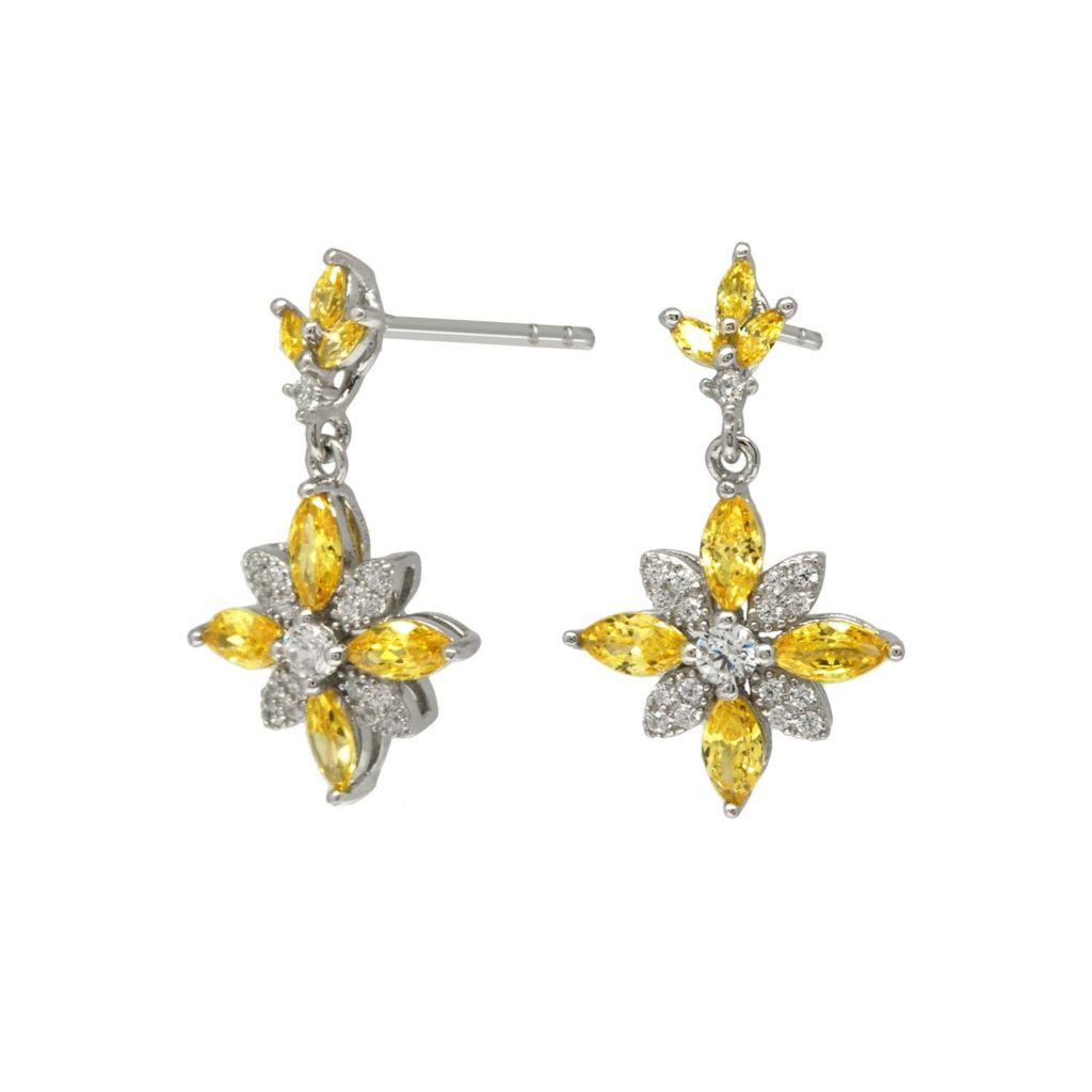 Ørepynt i sølv (925) med gule sirkonstener.