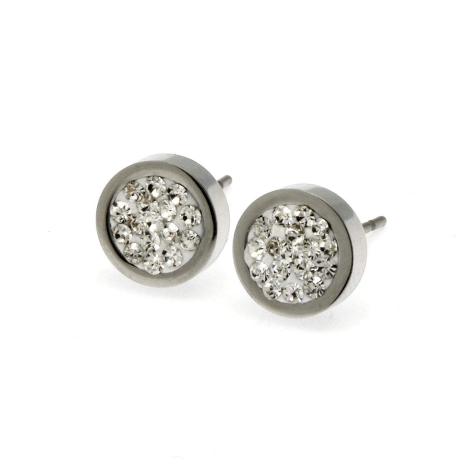 Ørepynt i stål flat sirkel 8mm med swarovski stener.