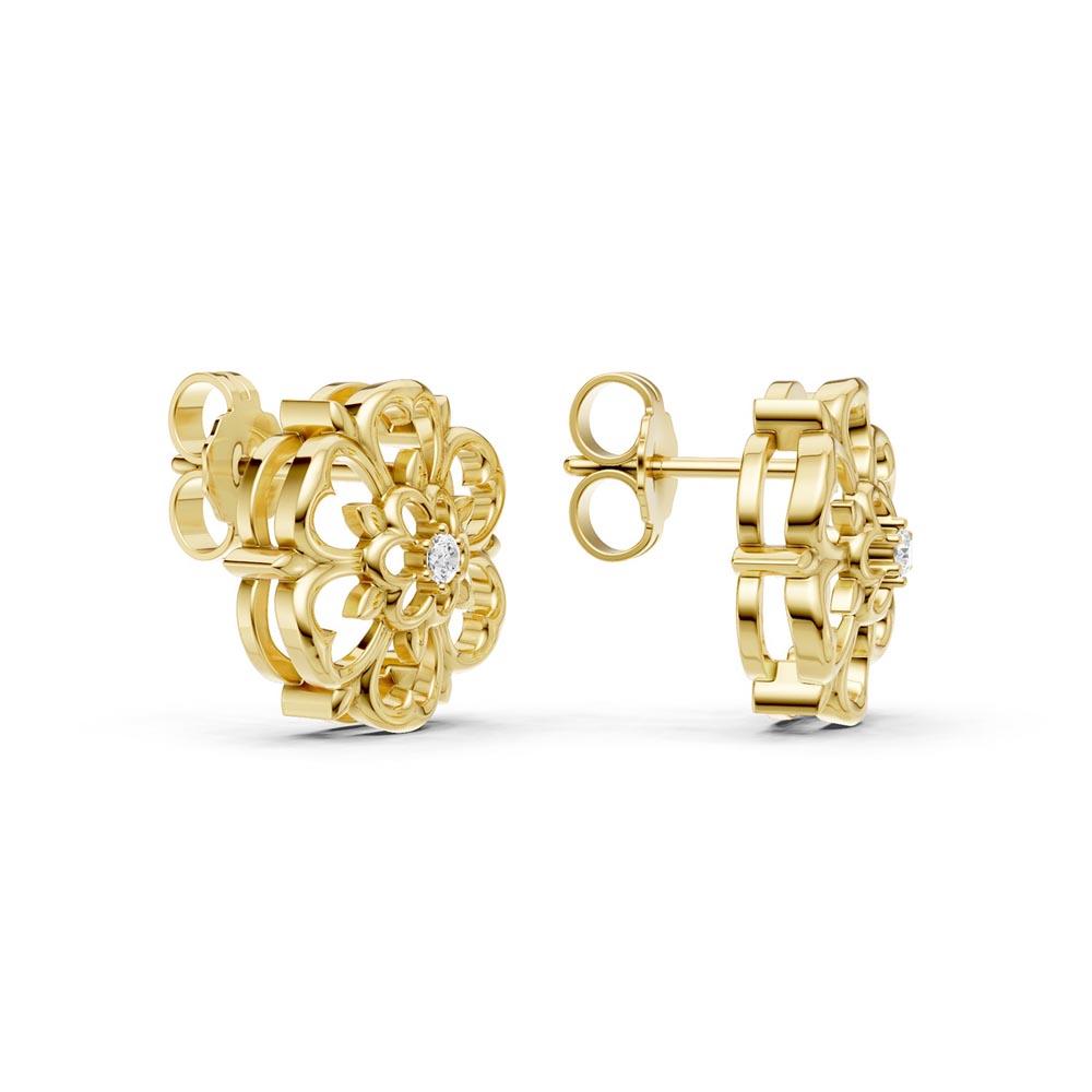 Trondhjemsrose ørepynt i gultgull 14karat (585) med 0,04ct TWSI diamanter.