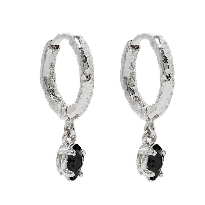 Ørering i sølv (925). Hamret overflate og svart sirkonsten i heng.
