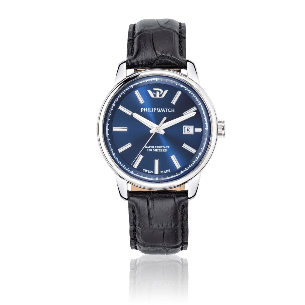Herreklokke fra Philip Watch med skinnreim og hvit urskive.