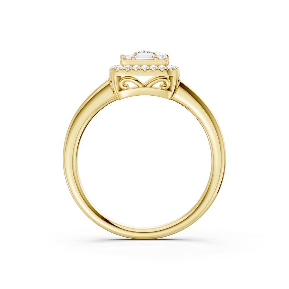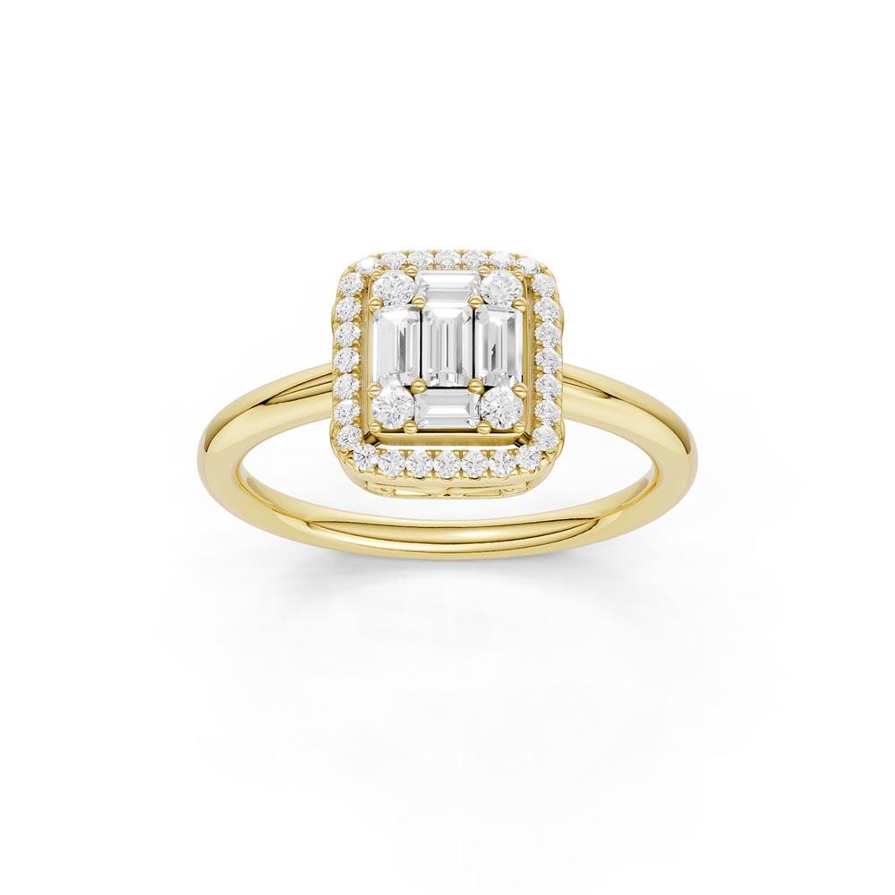 Firkantet ring i gultgull 14Karat (585) med firkantet 0,25ct TWSI diamant princess cut, baguette og brilliant cut