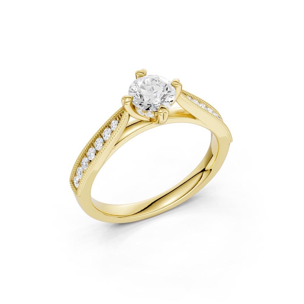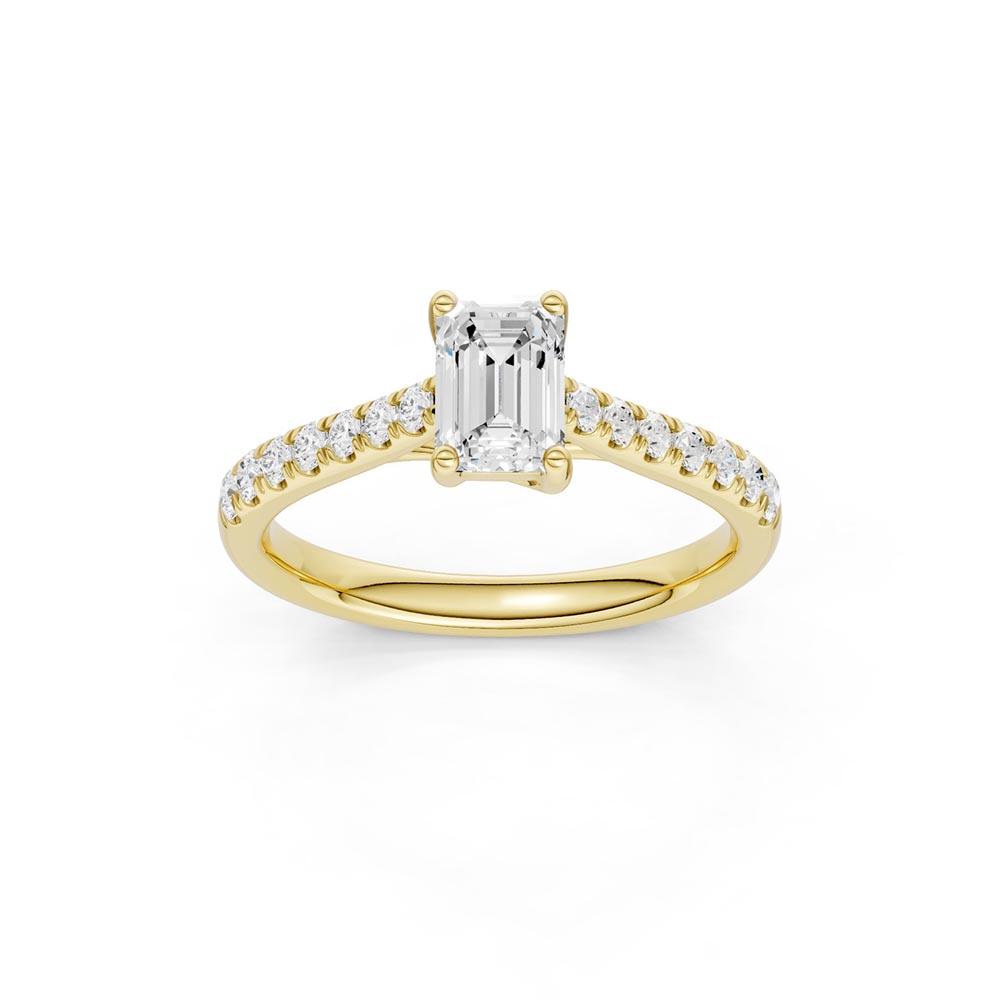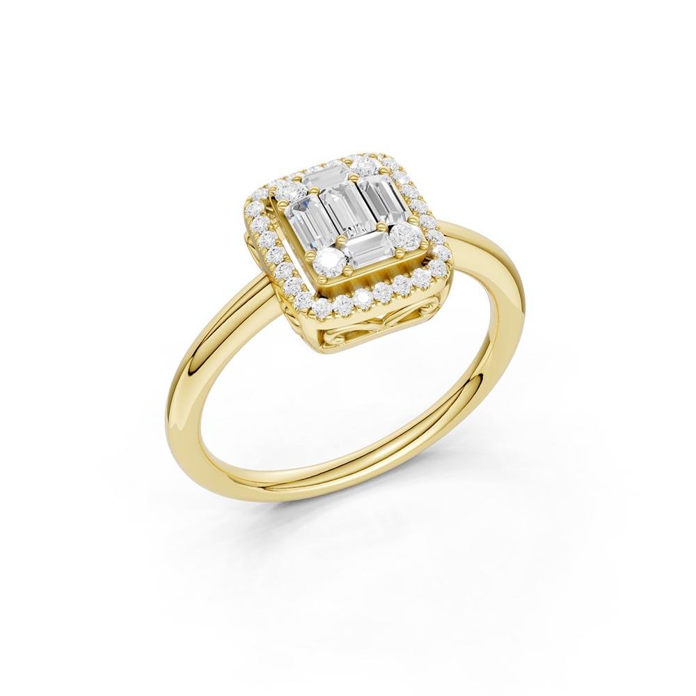 Ring i gultgull 14Karat (585) med 0,50ct TWSI baguette cut diamant + 0,25ct TWSI brilliant cut diamanter.