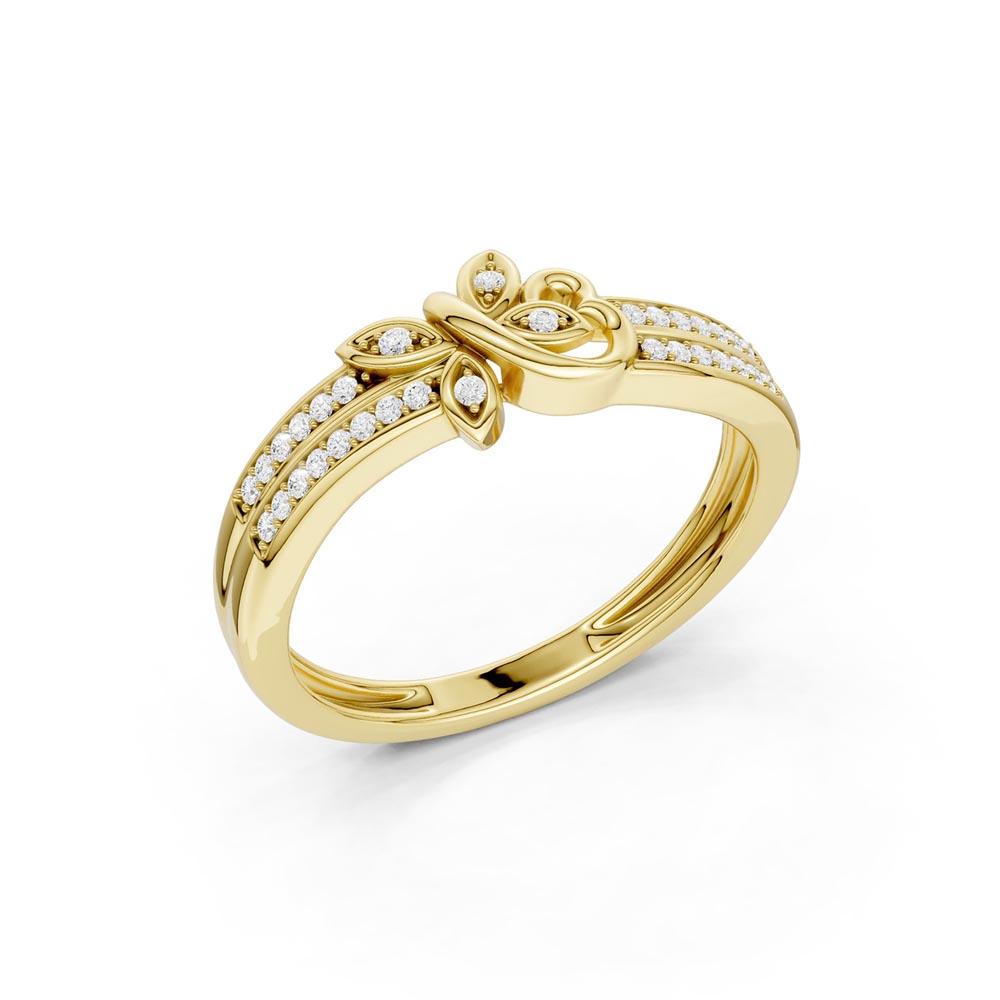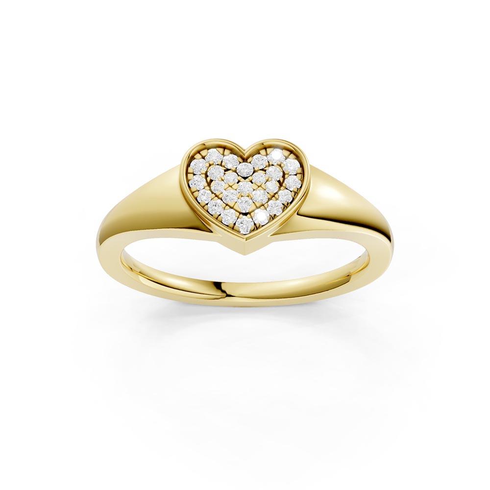 Ring i gult gull 14K (585). Hjerte med 0,12ct TWSI diamanter.