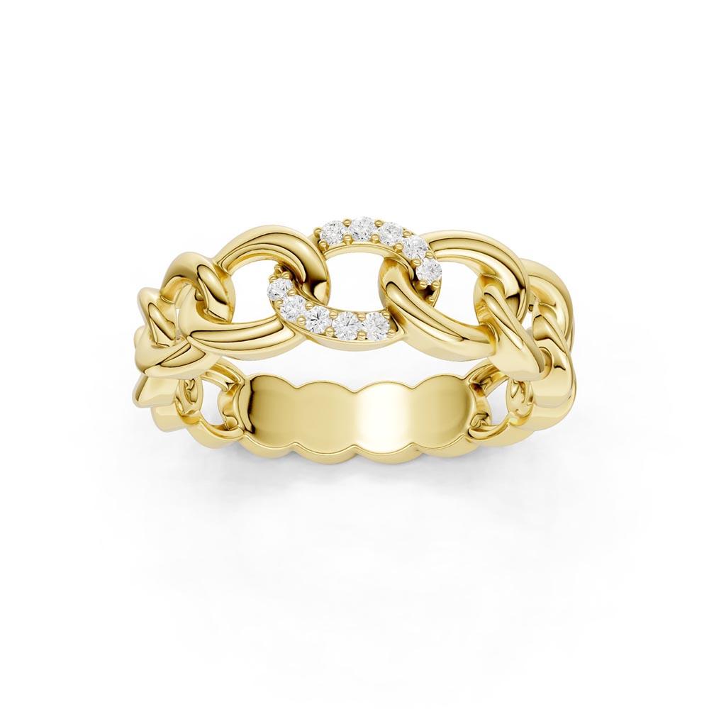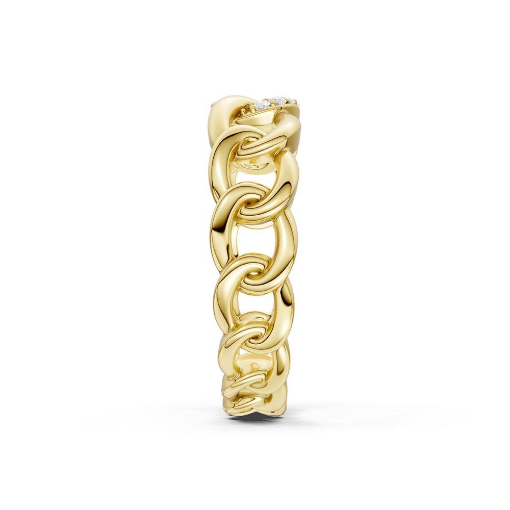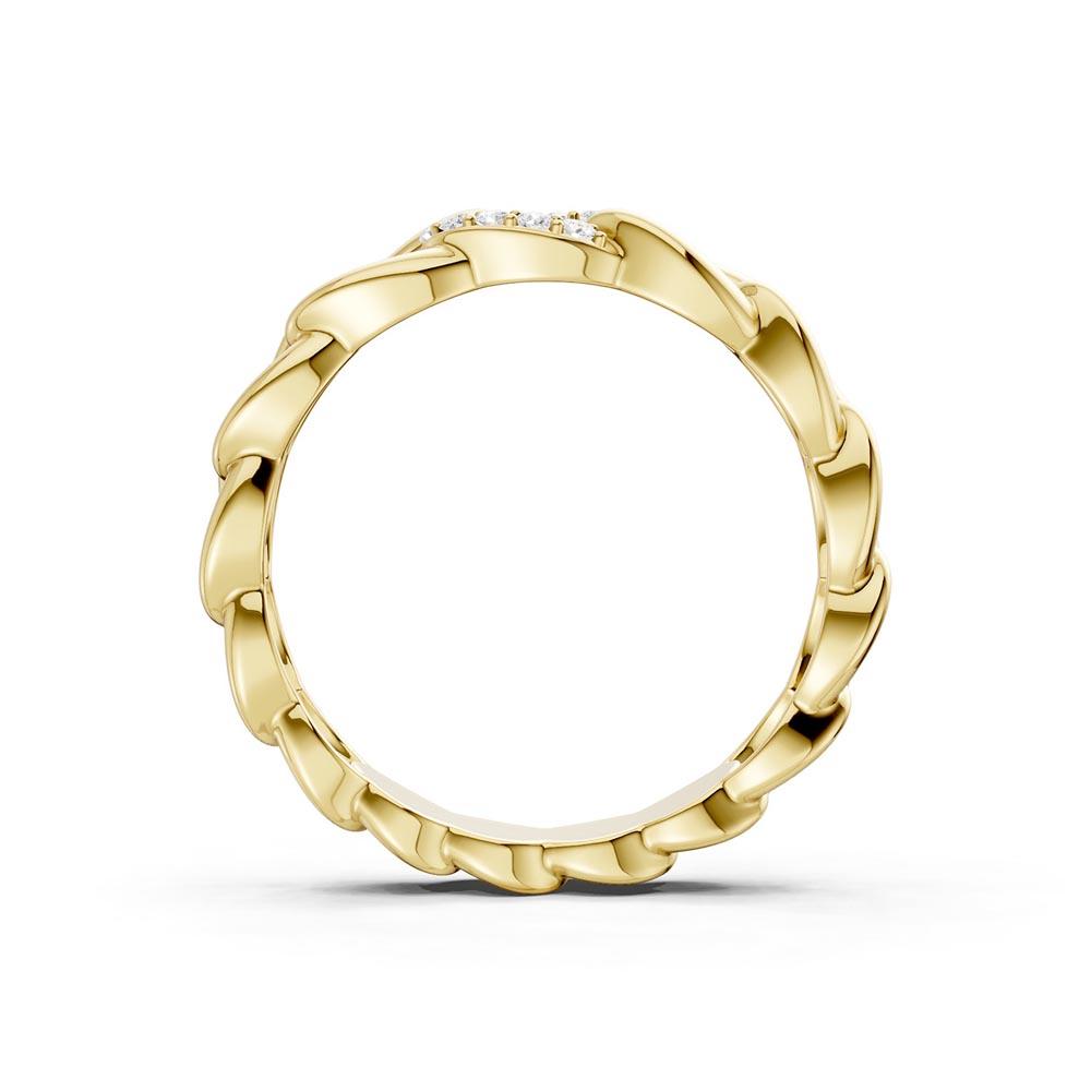 Ring i gult gull (585) 14K. Panser mønster med totalt 0,05ct TWSI diamanter på toppen.