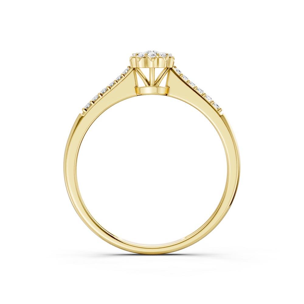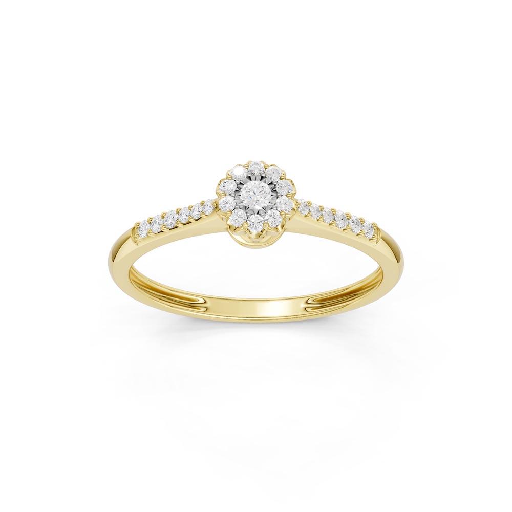 Ring gult gull 14K (585). Rosett med diamanter på sidene. Totalt 0,10ct TWSI.