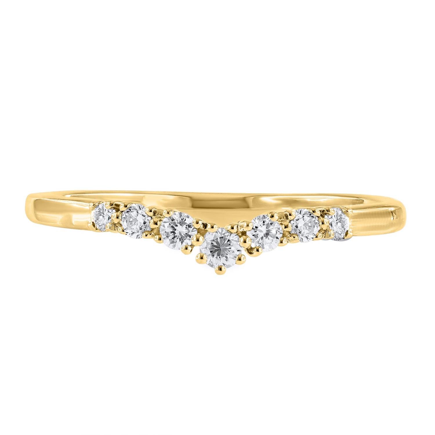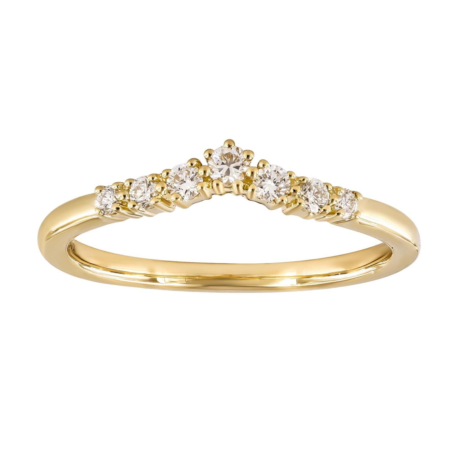 Ring gult gull 14K (585). V-form med 7diamanter. Totalt 0,16ct TWSI