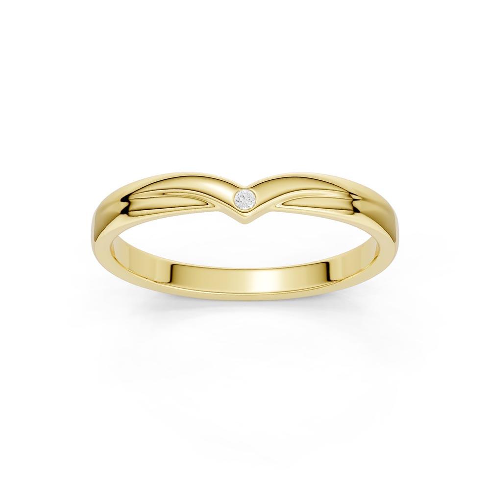 Ring i gult gull 14K (585). V-form med 0,01ct diamant