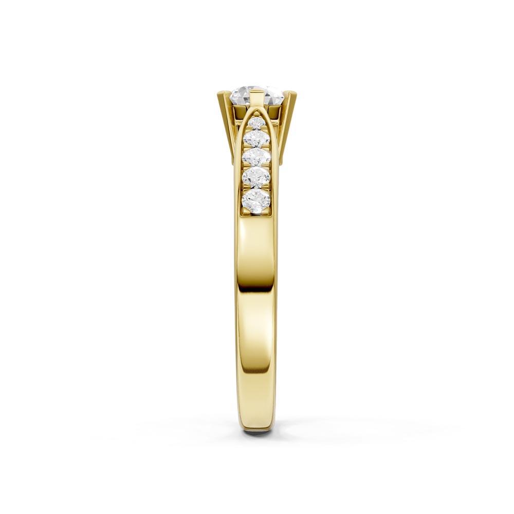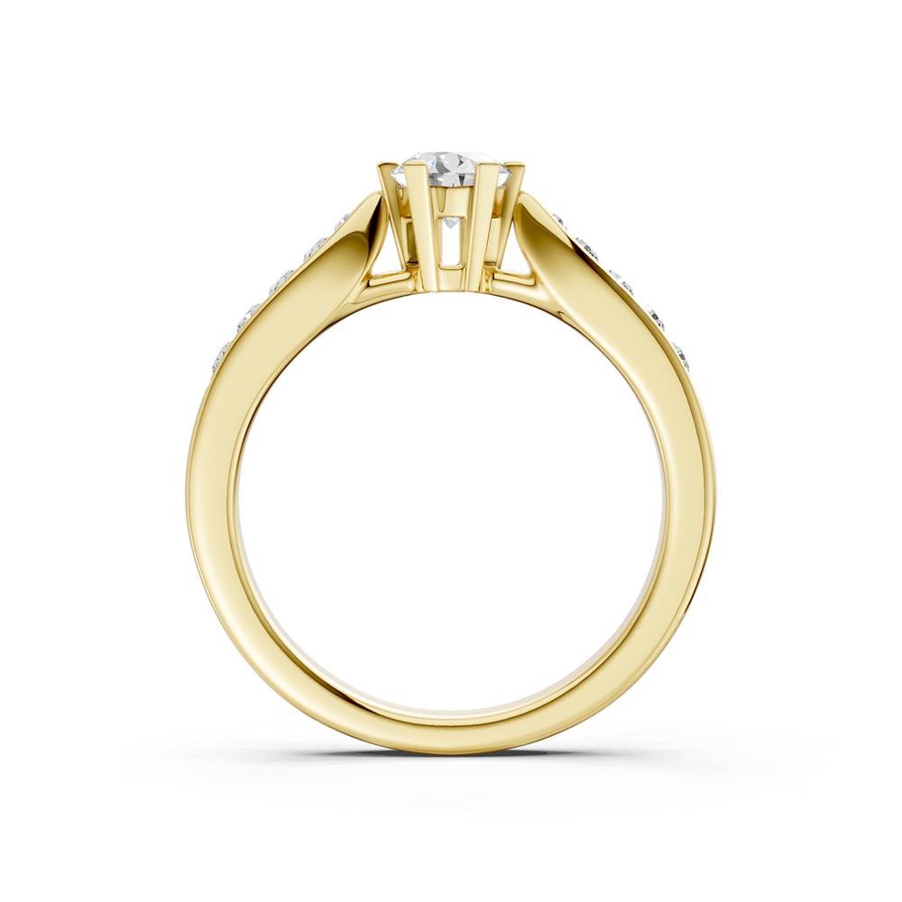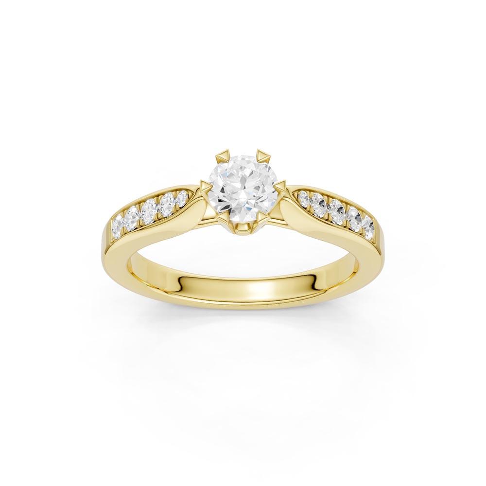 Ring i gultgull 14K (585) med én senter diamant og mindre diamanter på siden.