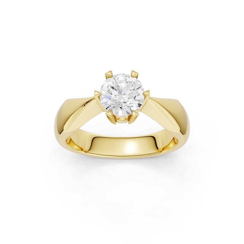 Enstens ring i gultgull 14K (585) med 1,00ct TWSI2 diamant som holdes på plass med 6 kraftige klør.