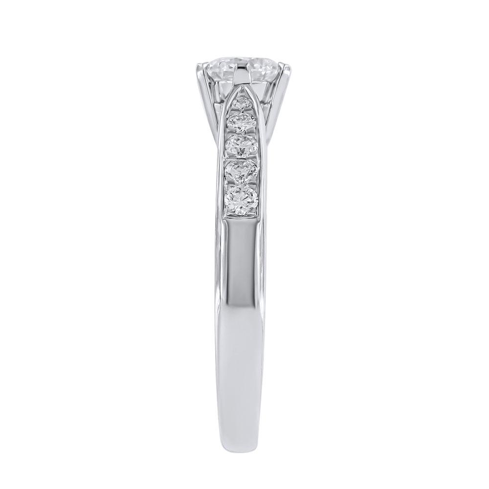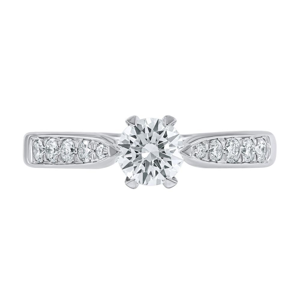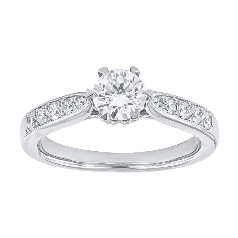 Ring i hvittgull 14K (585) med én senter diamant og mindre diamanter på siden.