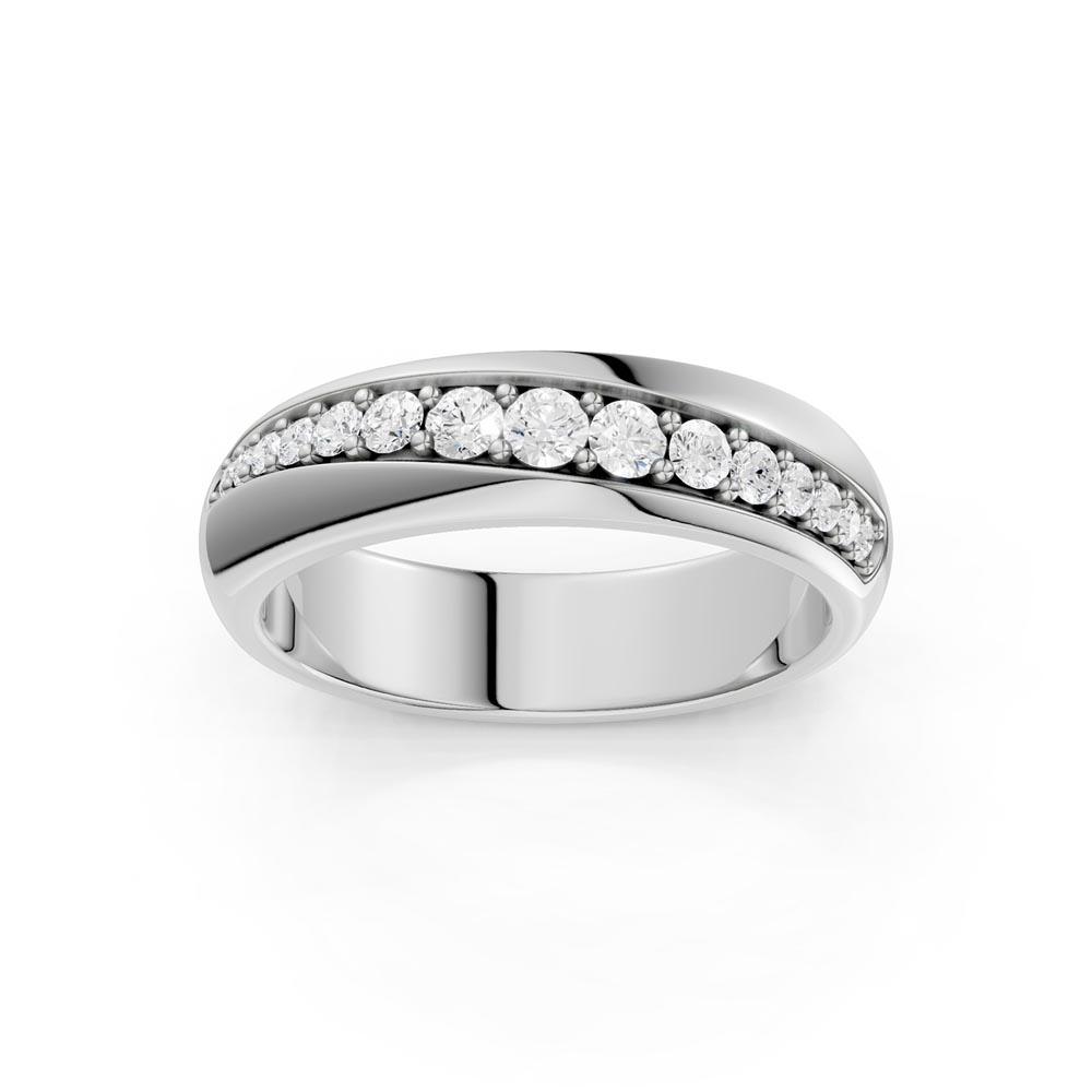Ring i hvitt gull 14K (585). Skrå/diagonal rekke med totalt 0,30ct TWSI diamanter.