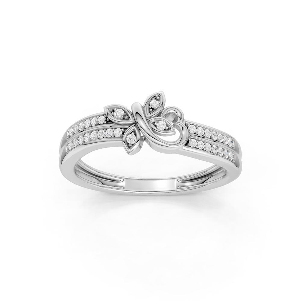 Ring i hvitt gull 14K (585). 2 rader med sommerfugl på toppen.