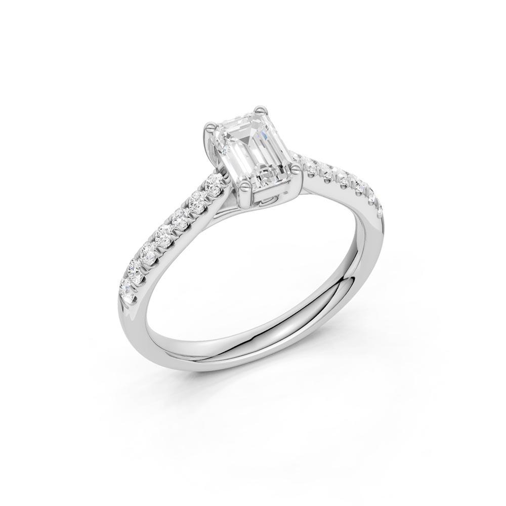 Stilful solitaire ring i hvittgull med diamant, innfattet av hjerteformede klør.