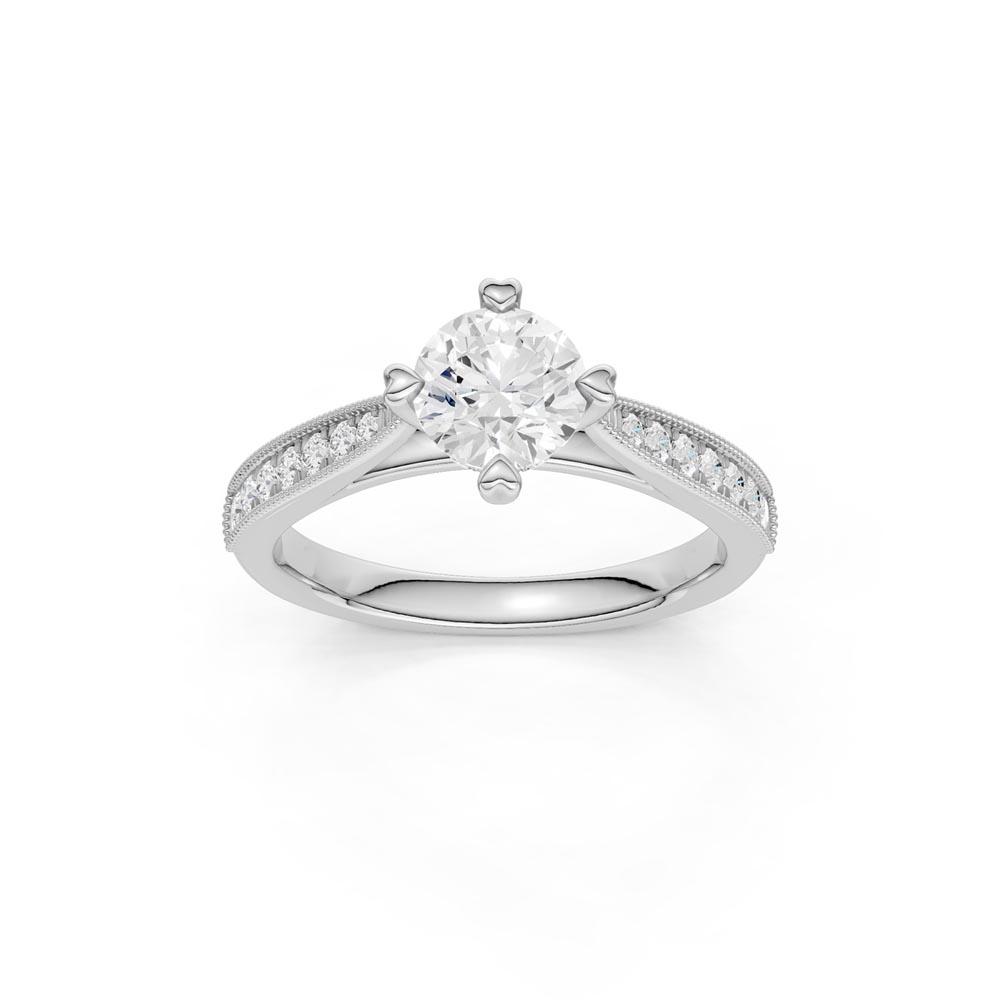 Ring i hvittgull 14karat (585) med totalt 1,00ct TWSI diamanter med hjerteklør rundt senter-diamant.