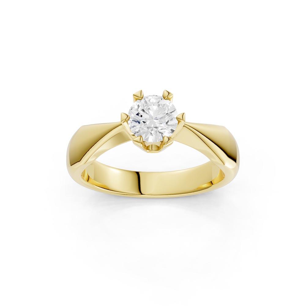 Enstens ring i gult gull 14K (585) med 0,75ct TWSI2 diamant og 6 kraftige klør som holder på plass diamanten.