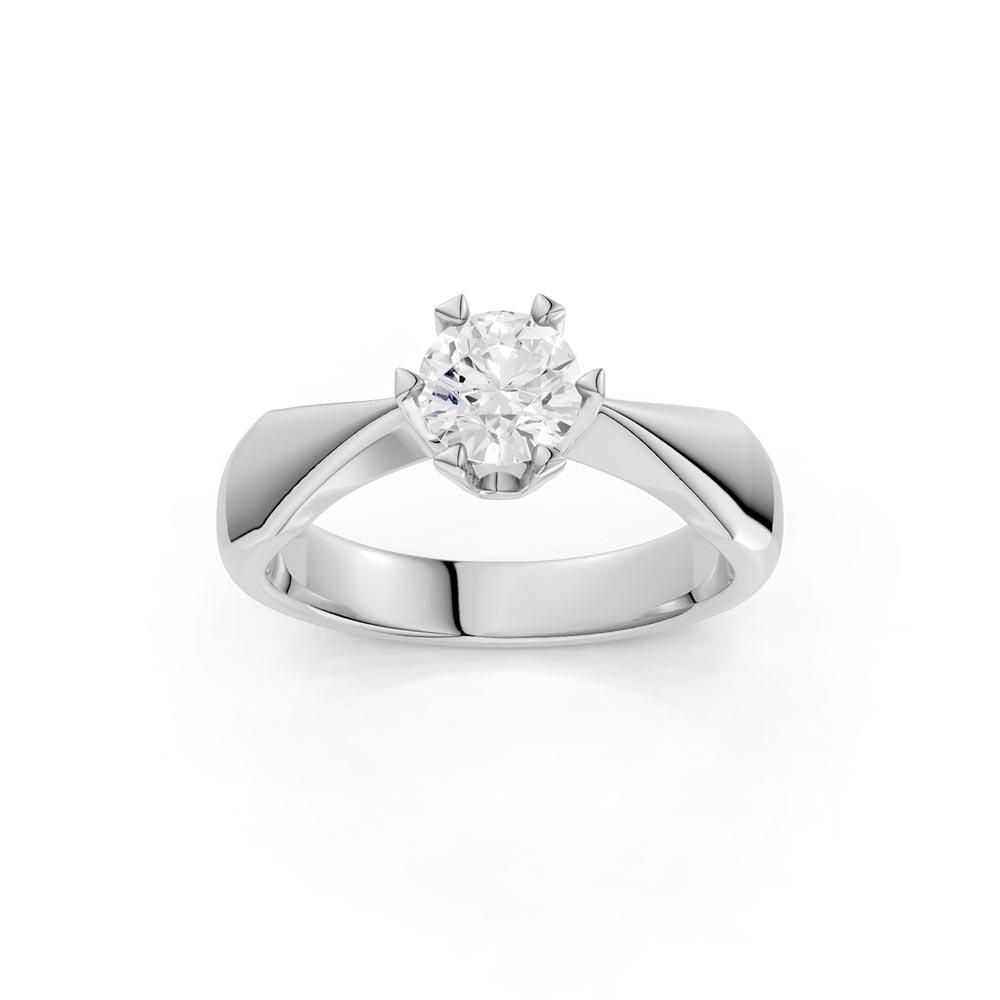 Enstens ring i hvitt gull 14K (585) med 0,75ct TWSI2 diamant og 6 kraftige klør som holder på plass diamanten.